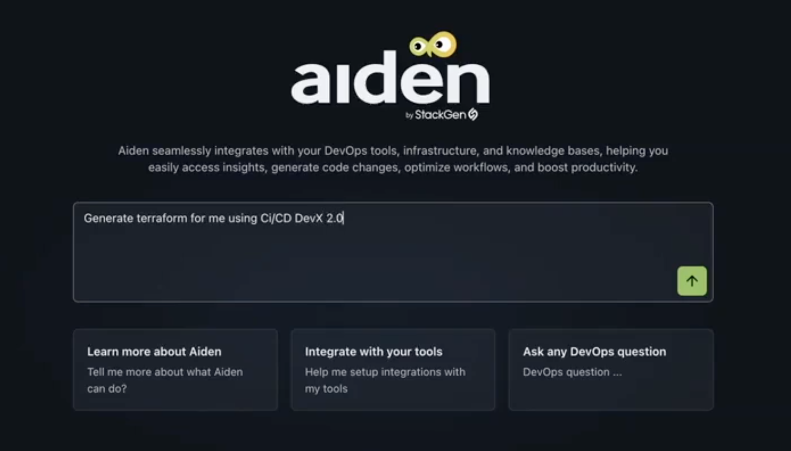 Yes. By default Aiden has integration with StackGen that can be turned on to create infrastructure appStacks. With Aiden's infrastructure management discipline, Aiden will have more StackGen capabilities (paid add-on) to work with.
