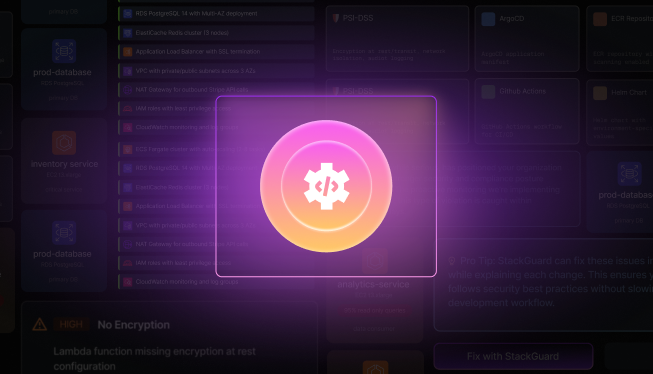 Simply describe what you need: "Deploy a Node.js app with PostgreSQL database, Redis cache, and auto-scaling for high traffic." Aiden instantly generates compliant Terraform, validates configurations, and provisions everything with built-in security policies.